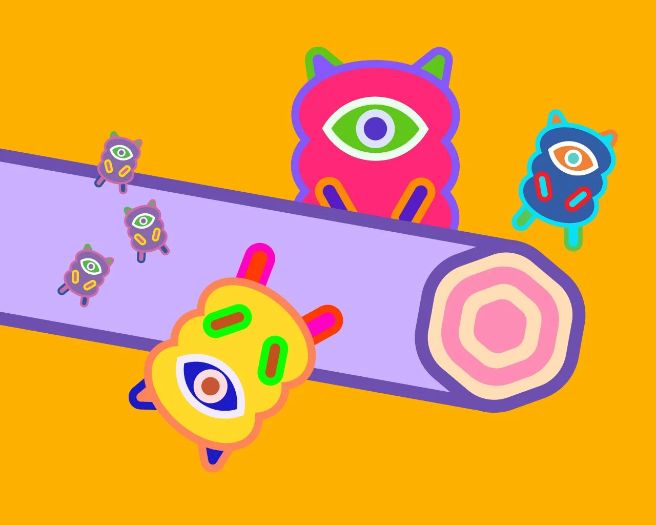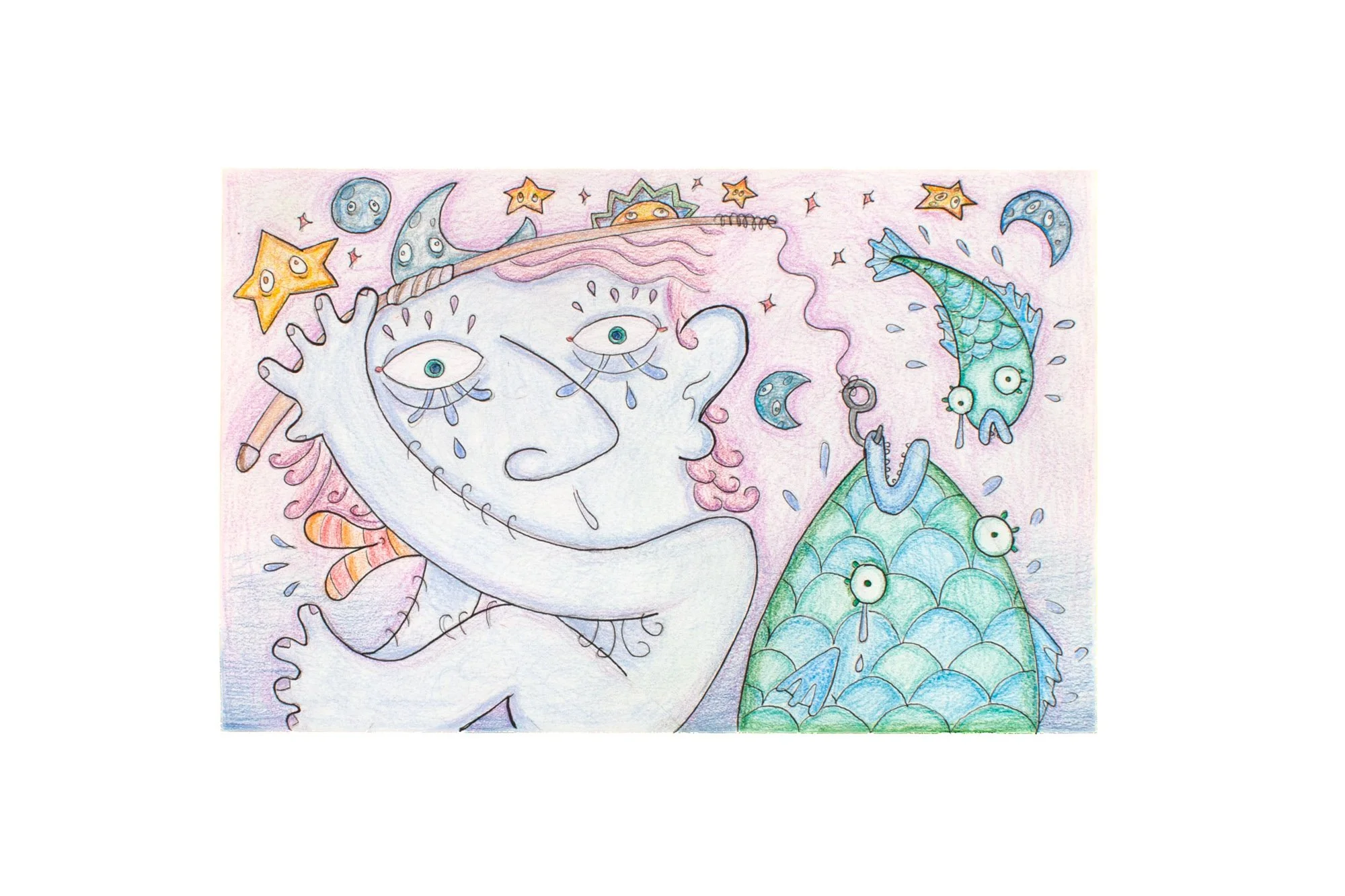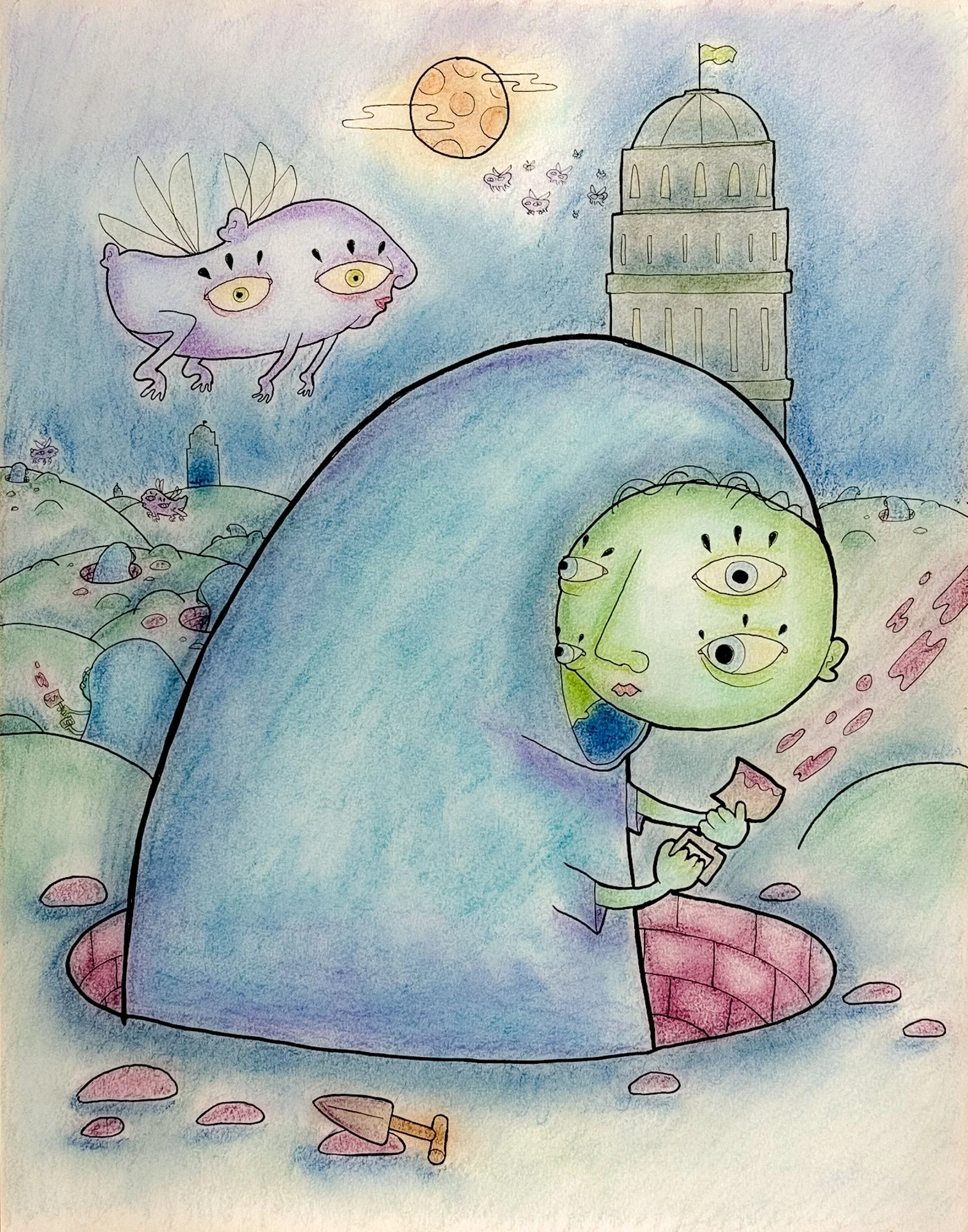 I create physical and digital art across different mediums and styles. Usually it involves a lot of floating, twirly things and eyeballs.